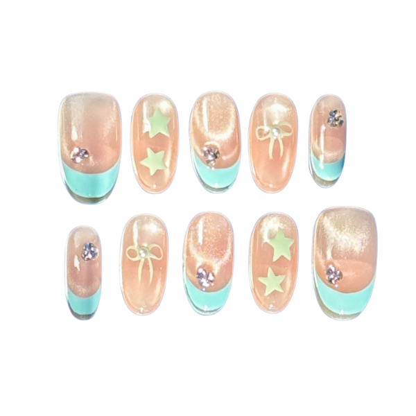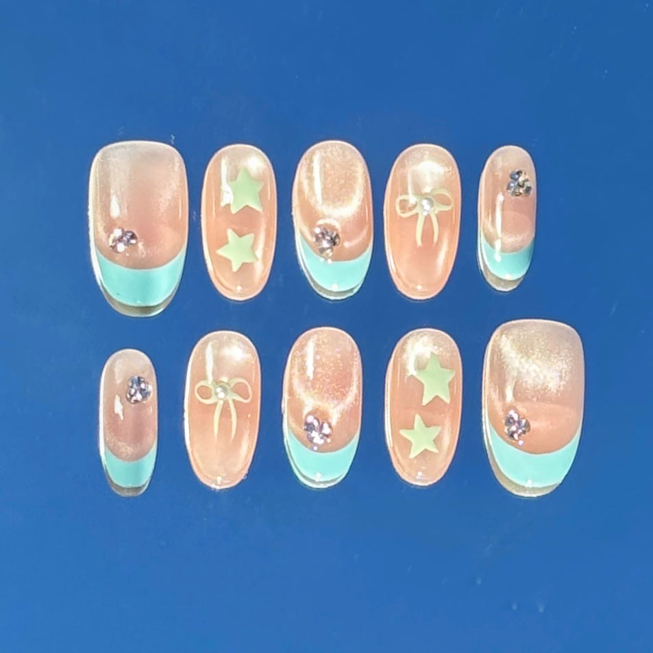 Pacific Park features a stunning nude cat-eye and gorgeous turquoise French tips. Perfect for everyday wear, events, or quick salon-quality nails at home.