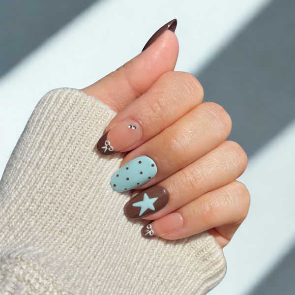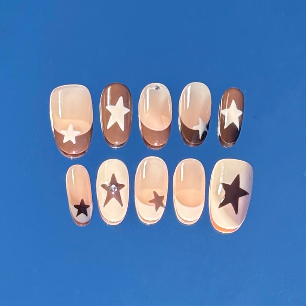 Topanga Canyon features a star and classic brown French tip design. Perfect for everyday wear, events, or quick salon-quality nails at home.