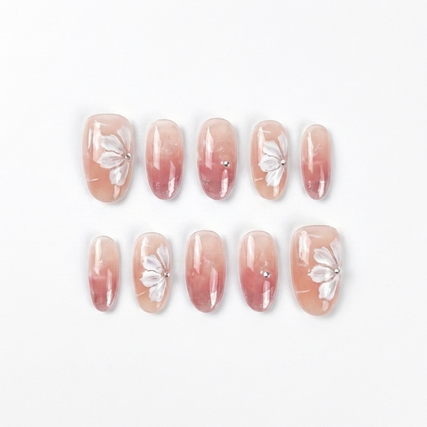 Sunset Blvd features a stunning ombre pink base with mirror-pink tips and gorgeous flower designs. Perfect for everyday wear, events, or quick salon-quality nails at home.
